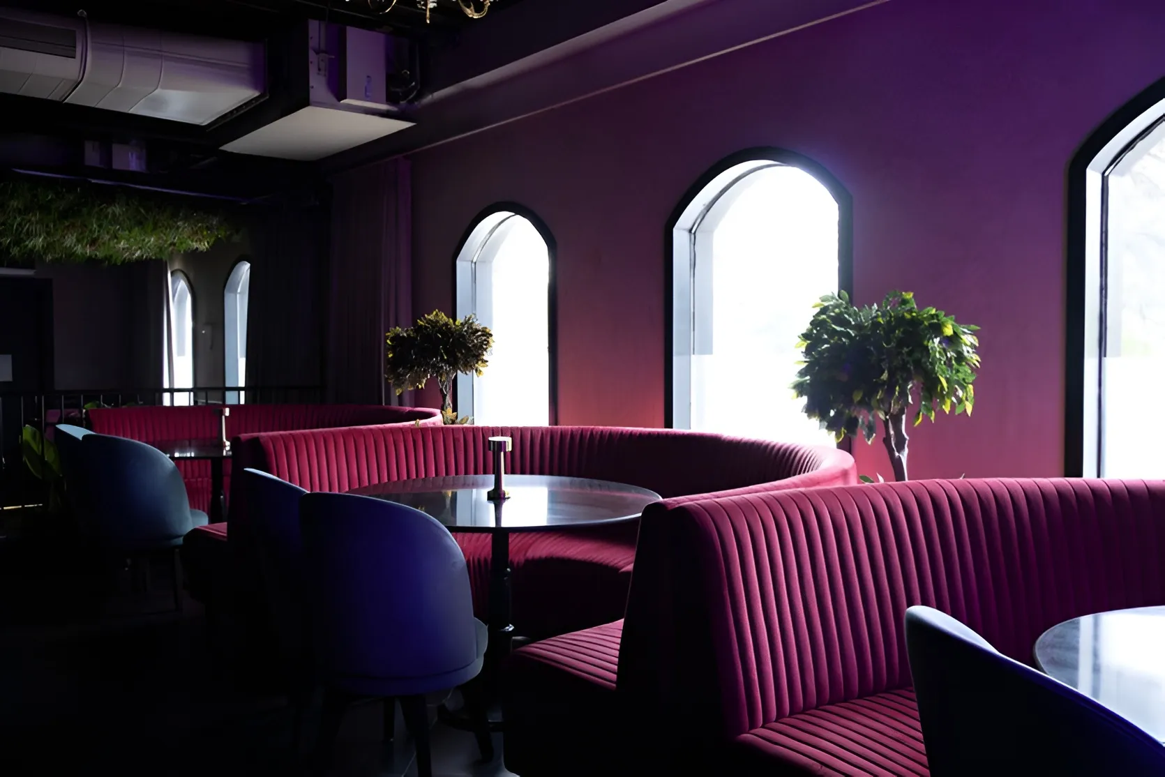 Old Carrison Vintage Bar welcomes with grand arches, blending British elegance and Peaky Blinders–inspired vintage charm. Deep velvet tones, golden bar glows, arched cabinets, and curated paintings create a warm, intimate atmosphere. A landmark at NMMC’s dome, it offers every evening a timeless escape with a Peaky twist.